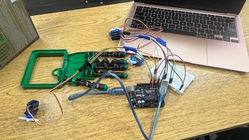 This is the robotic hand I made in my Bioengineering class. We learned the challenges of making prosthetics, especially hands, because of their complexity. I ran into a few issues with the coding part of the project, but overall, I’m pretty satisfied with the outcome.